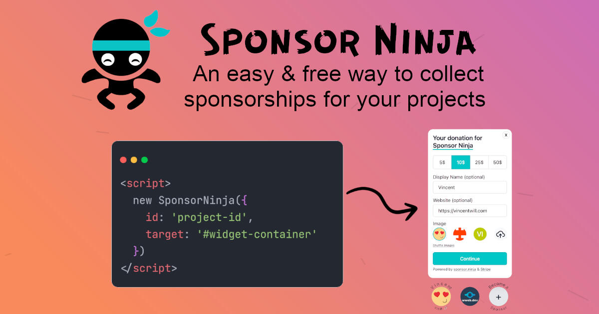 An easy & free way to collect sponsorships for your projects. Users who donate will then be displayed automatically on your website.